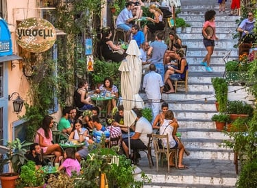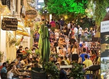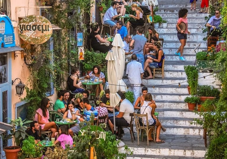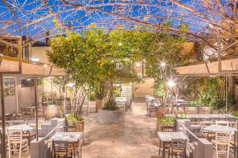 Ama Lachei: Nestled in Exarchia, Ama Lachei charms diners with its spacious courtyard, once a school playground, and its diverse menu of Greek meze and specialties. With knowledgeable staff and a relaxed atmosphere, it's the perfect spot to enjoy Greek cuisine, especially during the warm summer evenings.