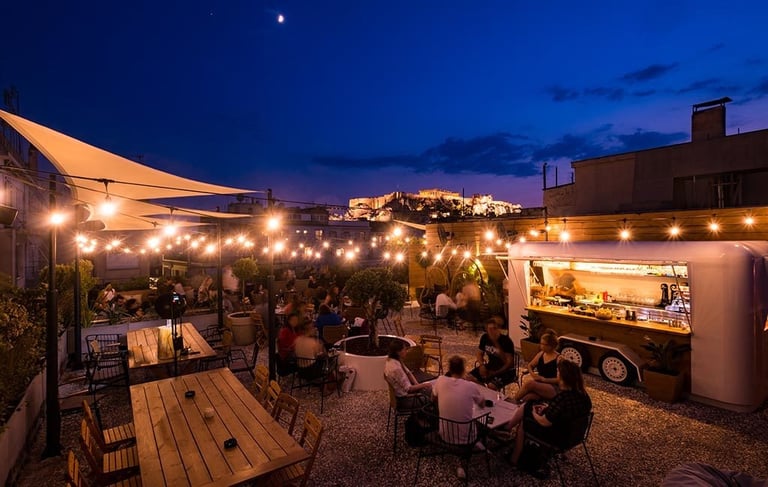 Nestled in the heart of the city, Couleur Local offers more than just cocktails; it's a feast for the senses with its mesmerizing view of the Acropolis. Savor your drink as the ancient marvels cast their enchanting spell.