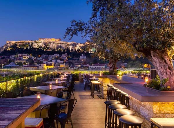Visit the 360 Cocktail Bar for its panoramic views of the Acropolis and its vibrant vibes that attract a lot of tourists but also locals.