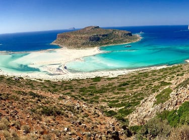 Balos Beach is an hour drive from Chania and is an absolute must-see, boasting stunning turquoise waters embraced by powdery white sands, creating a picturesque paradise that simply takes your breath away. Its untouched beauty and tranquil atmosphere make it a gem;