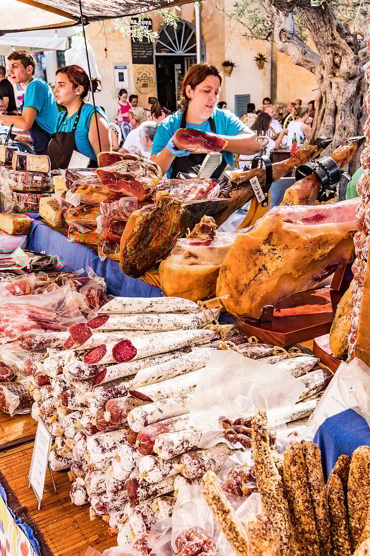 In the town of Santanyi, the local Santanyi Market is a must-visit, held twice a week on Wednesday and Saturday. Here, you'll find locals selling delicious, perfectly ripe vegetables and fruits, alongside stalls offering wine and handcrafted clothes and goods. If you're in the area, don't miss this vibrant market—you won't regret it!