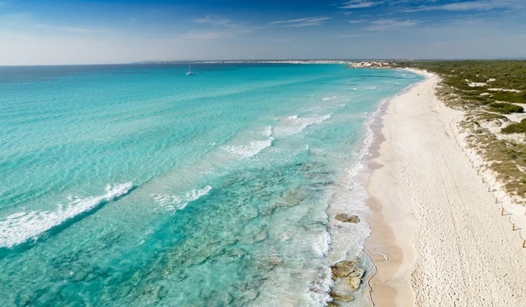 Next to Estanys you will also find Es Trenc Beach which is renowned for its pristine white sand and crystal-clear turquoise waters, often likened to the Caribbean. Nature lovers will appreciate the surrounding dunes and the protected natural park, perfect for scenic walks and birdwatching.