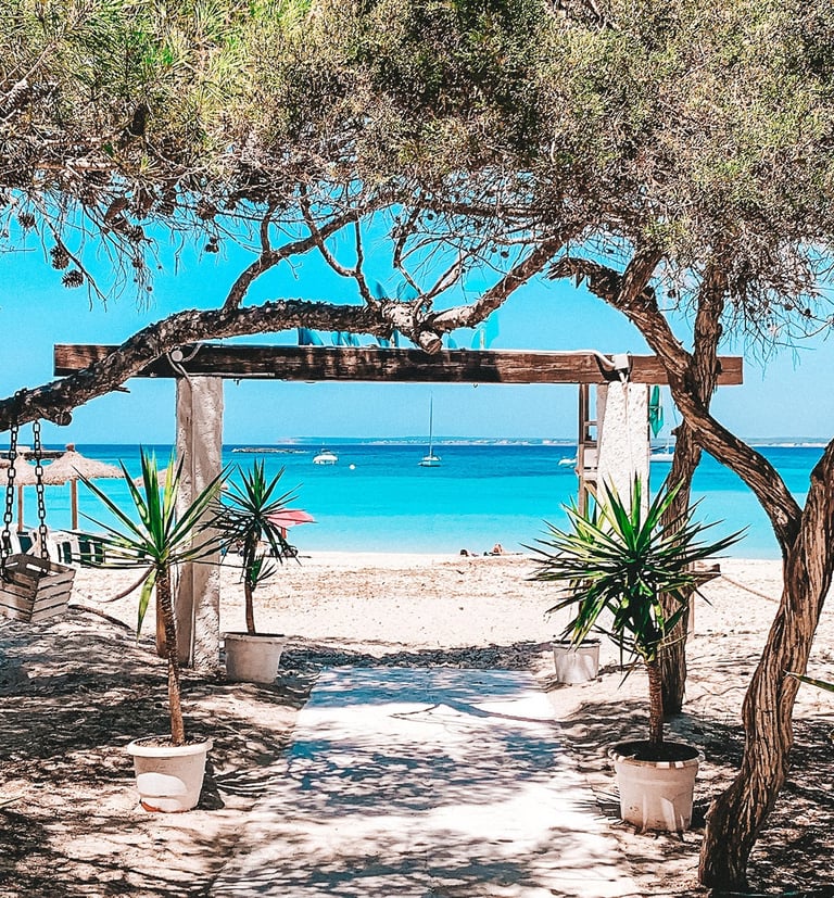 Starting with Platja Estanys, my favorite spot upon arriving on this beautiful island, you'll find a serene and tranquil environment perfect for unwinding away from the crowds. Its shallow waters are ideal for a relaxing swim and it's a great spot to enjoy the stunning sunsets.