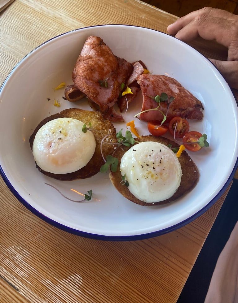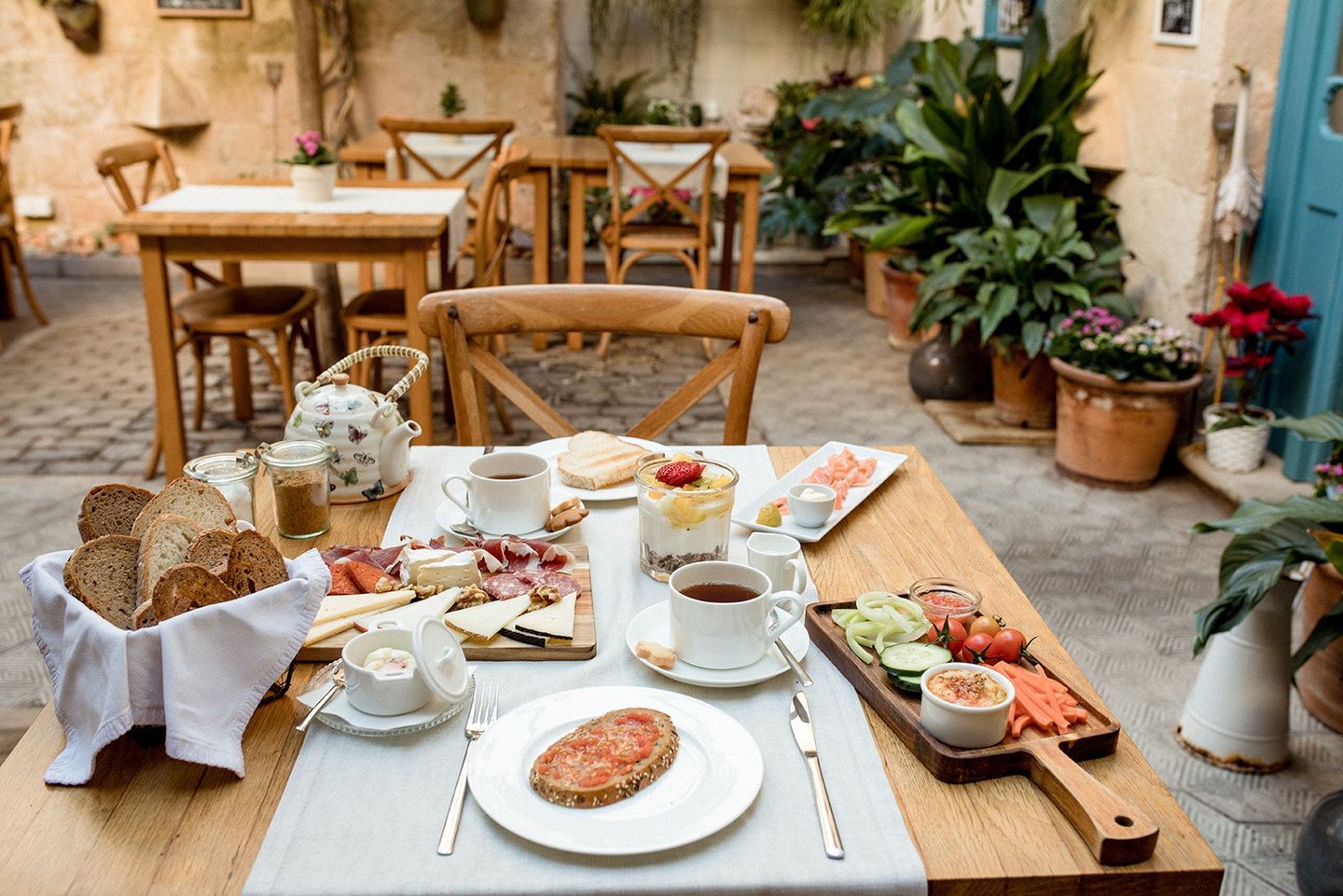 Indulge in a delightful brunch experience within this serene oasis amidst the bustling town.