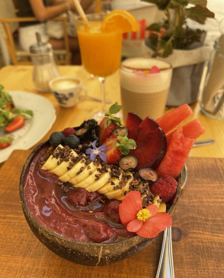 If you're kicking off your day in Ciutadella city, Nibs Healthy Bar is your top choice. With its wide array of options and laid-back ambiance in a charming square, it's sure to satisfy both your taste buds and your desire for a relaxed start to the day.