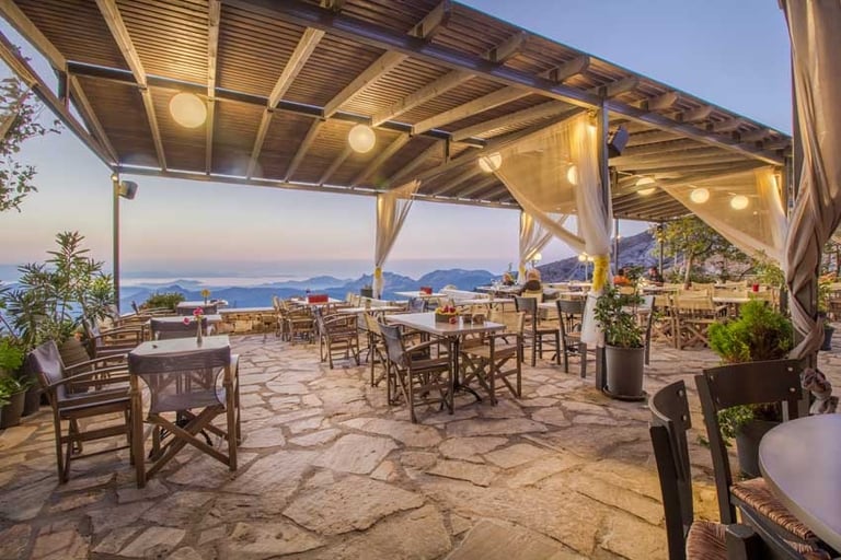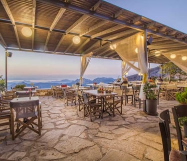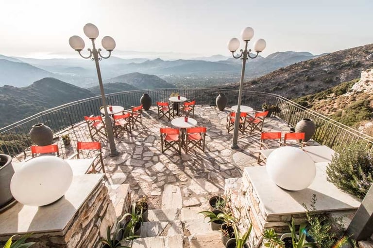 Discover Rotonda, a restaurant with great view of the island, nestled on the route from Filoti to Apeiranthos. Whether you're craving morning bites and coffee or indulging in late-night Naxian delights and cocktails, this charming spot offers traditional dishes paired with magnificent sunset views.
