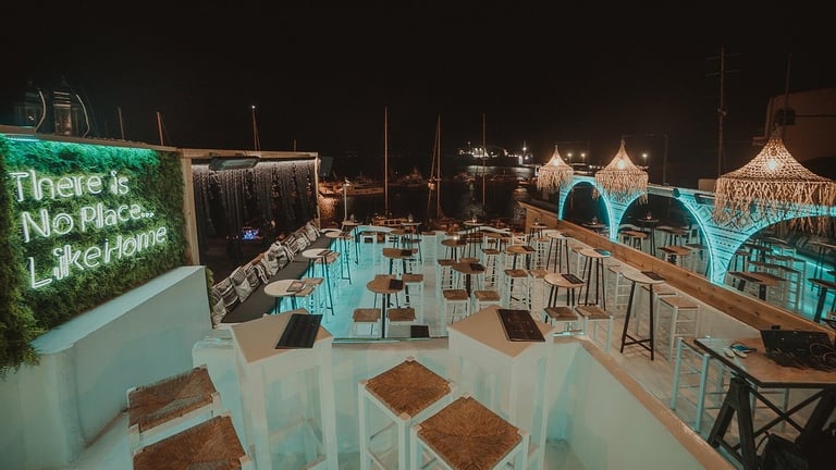 Start your night in Naxos Town, where you'll find Swing Bar, known for its creative cocktails and eclectic décor. The rooftop terrace provides panoramic views of the harbor, making it an excellent spot for an evening drink.
