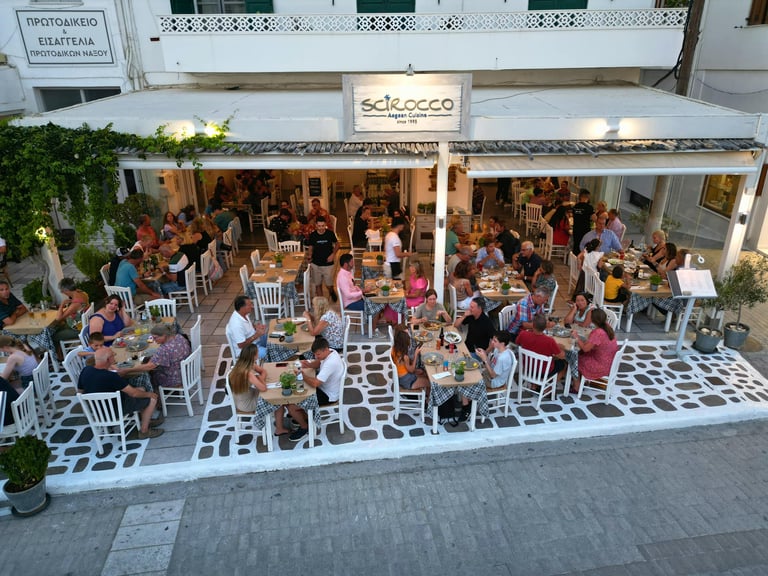 Next, visit Scirocco, a favorite among locals and tourists alike. Renowned for its delicious Mediterranean menu and friendly service, Scirocco is located in the heart of Naxos Town, making it an ideal spot for a leisurely meal.