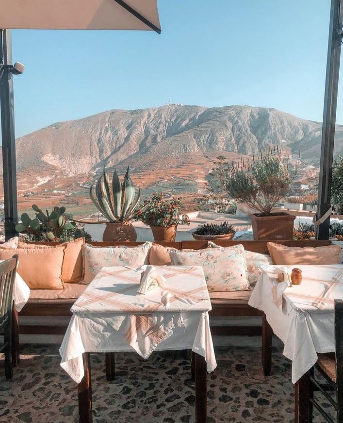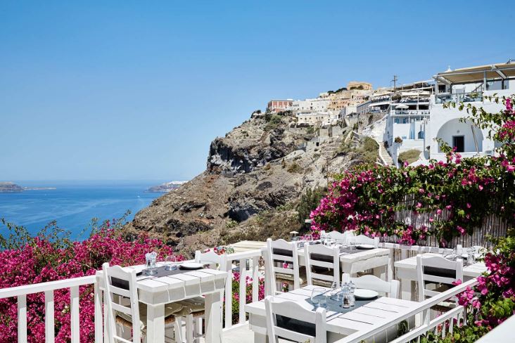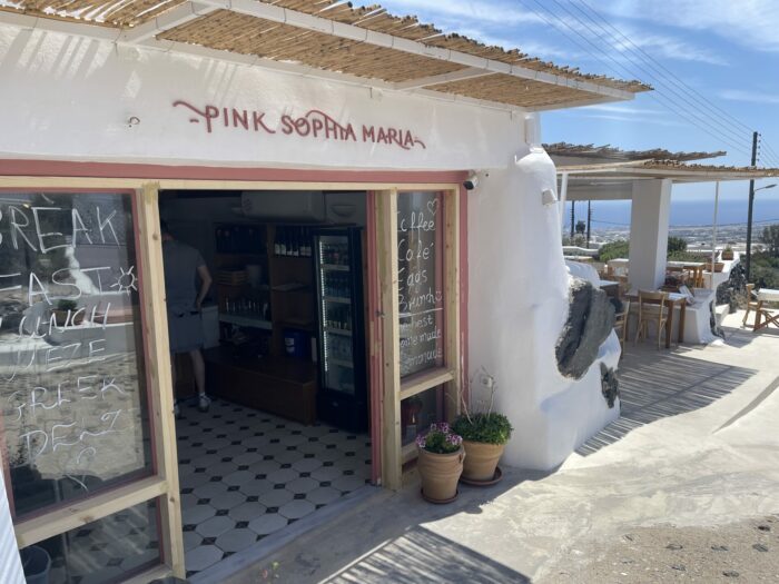 Pink Sophia Maria in Fira is known for its delightful brunch options and charming ambiance. With a variety of delicious dishes and excellent coffee, it’s the perfect spot to begin your day.