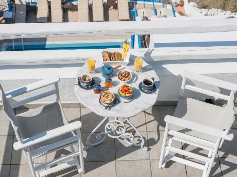 To start your day off right or take a pleasant break, visit one of Santorini's top-rated brunch and coffee specialty places.